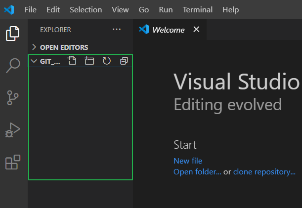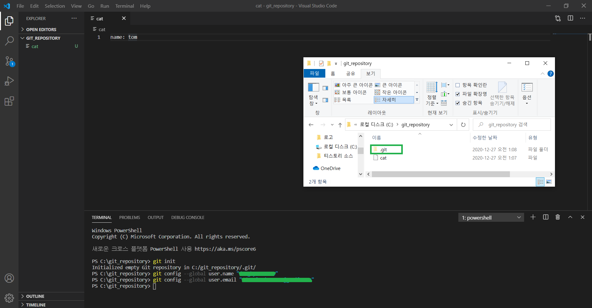 git 저장소로 사용할 폴더를 열고 저장소로 초기화 하기