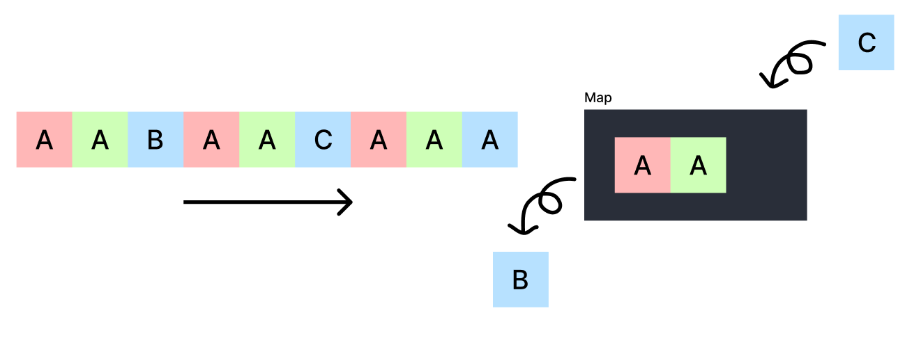 보석의 종류가 n 개라면 모든 구간은 최소 n 의 길이 이상이다.