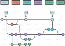 Gitflow Workflow 에서는 제품을 개발 하는 시점부터 운영하는 마지막까지 항상 존재하는 메인 브랜치 (master, develop) 와 일정 기간 동안만 유지되는 보조 브랜치들 (feature, release, hotfix)을 포함하여 총 5가지의 브랜치를 사용한다.