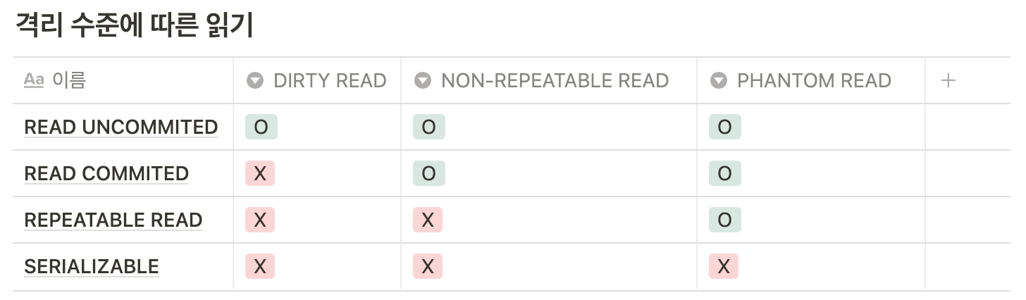 - 이런 읽기를 허용하는 격리 수준을 READ UNCOMMITED 라고 부른다.