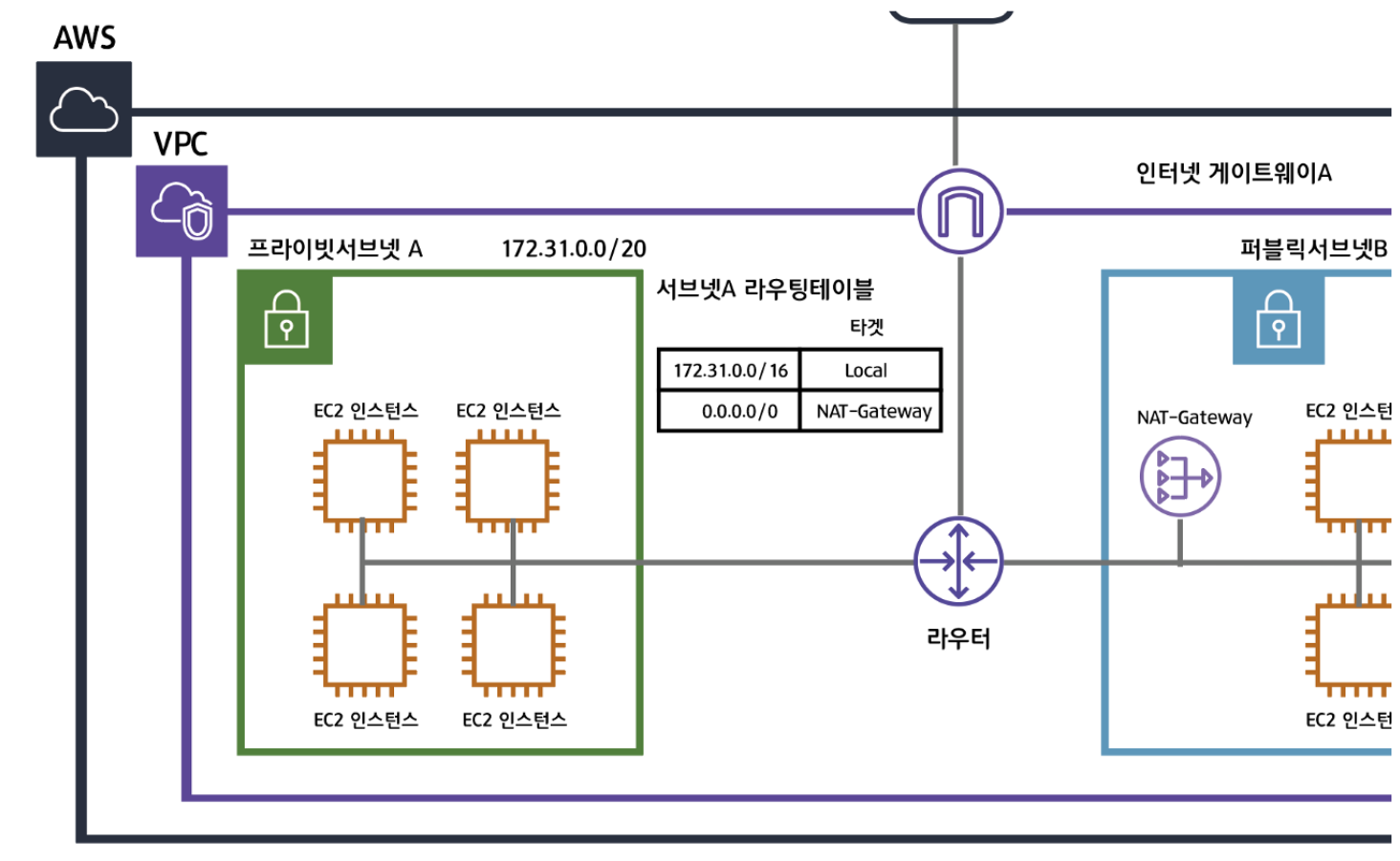 인터넷과 연결되어 있는 서브넷을 public 서브넷, 그렇지 않은 서브넷을 private 서브넷이라고 부릅니다.