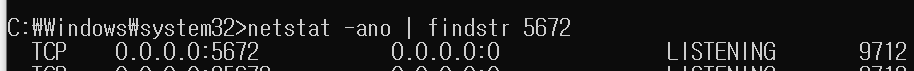 netstat -ano | findstr 5672