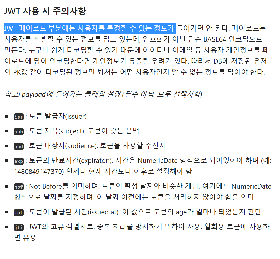 JWT 사용시 주의 점
