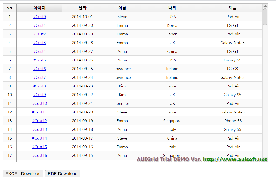 HTML5 자바스크립트 그리드(javascript grid) - AUIGrid