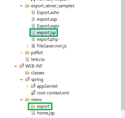 // 스프링 또는 MVC 프레임워크로 프로젝트가 구축된 경우 해당 폴더의 export.jsp 파일을 참고하여 작성하십시오.