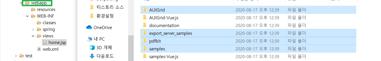 위 파일만 webapp > resources 폴더에 담아줍니다.