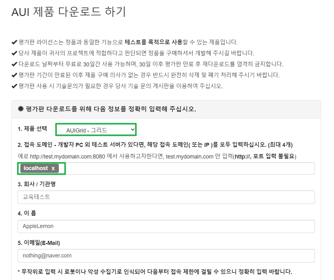 AuiSoft Grid 설치방법 (테이블, 게시판)