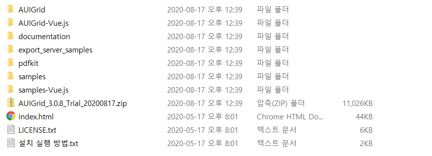 - AUIGrid : 필요한 이미지, css 파일이 있습니다.