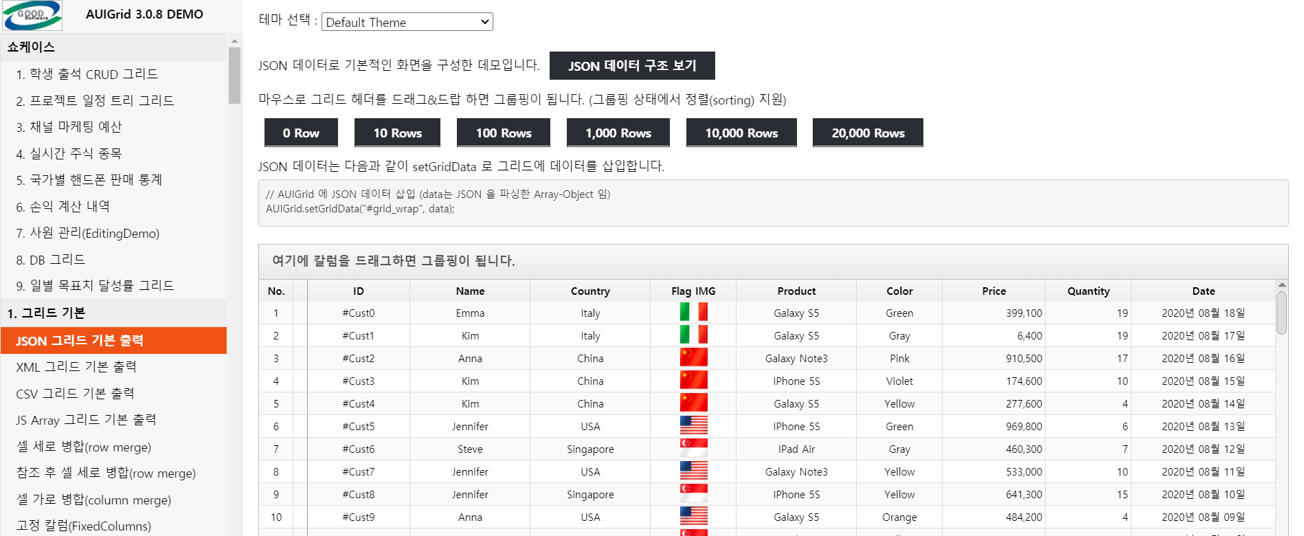 소스 참고할 할 사이트 : http://www.auisoft.net/demo/auigrid/default_demo.html?ex1_1&theme=default&s=0