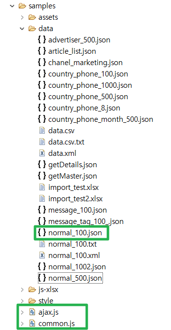 - samples : 샘플로 사용할 DATA가 들어있습니다. 또한 필요한 JS 파일이 들어있습니다.