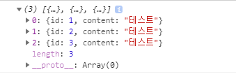 자바스크립트 Array 를 생성해서 프로퍼티로 id, content를 생성한 뒤, JSON 라이브러리로 파싱하는 방법
