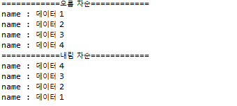 System.out.println("============오름 차순============");